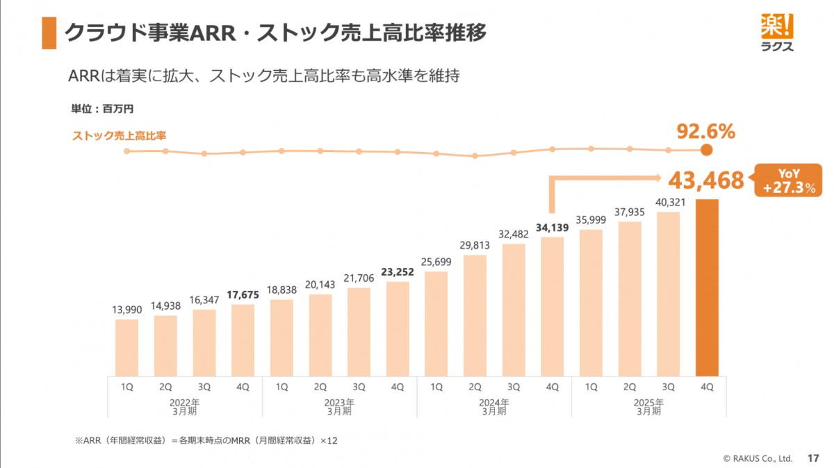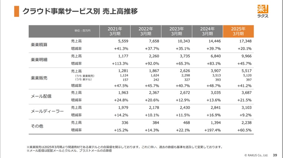 そんなラクスのクラウド事業は実はメール管理サービスの開発からスタートしており、メール関連サービス全体では21年に39.4億円だった売上が25年には67.9億円と、上場SaaS一社程度の巨大な事業となっています。
